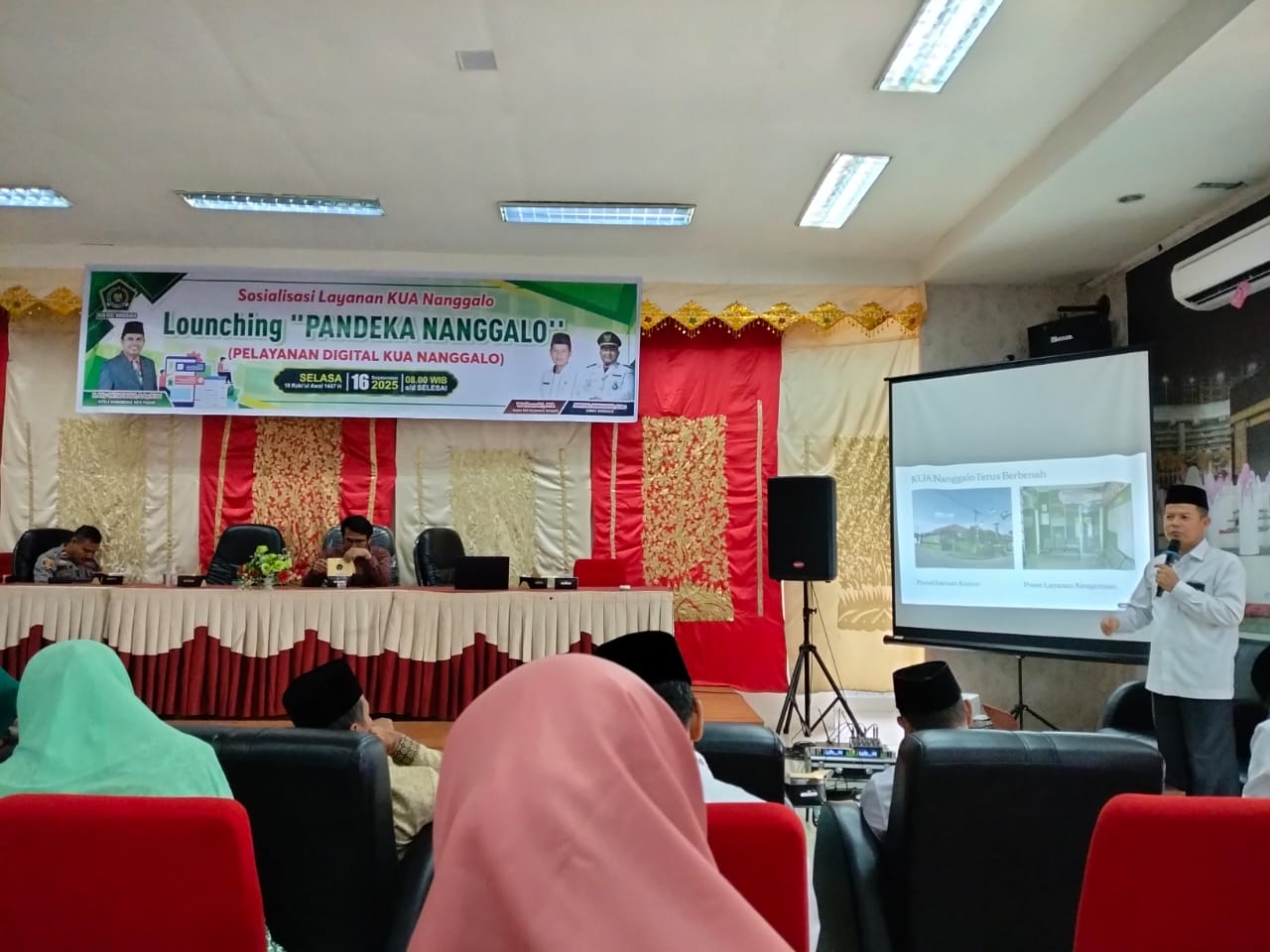 Kepala Kantor Kementerian Agama Kota Padang, H. Edy Oktafiandi, S. Ag, M. Pd resmikan pemanfaatan website KUA Nanggalo yang dikemas dalam inovasi PANDEKA Nanggalo yaitu "layanan digital KUA Nanggalo", Selasa (16/9/2025) di aula kantor camat setempat. Dalam sambutannya, beliau menyinggung pentingnya dan strategisnya layanan baru dalam bentuk digitalisasi layanan yang disuguhkan KUA Nanggalo untuk membantu dan memudahkan masyarakat dalam memenuhi kebutuhan masyarakat.